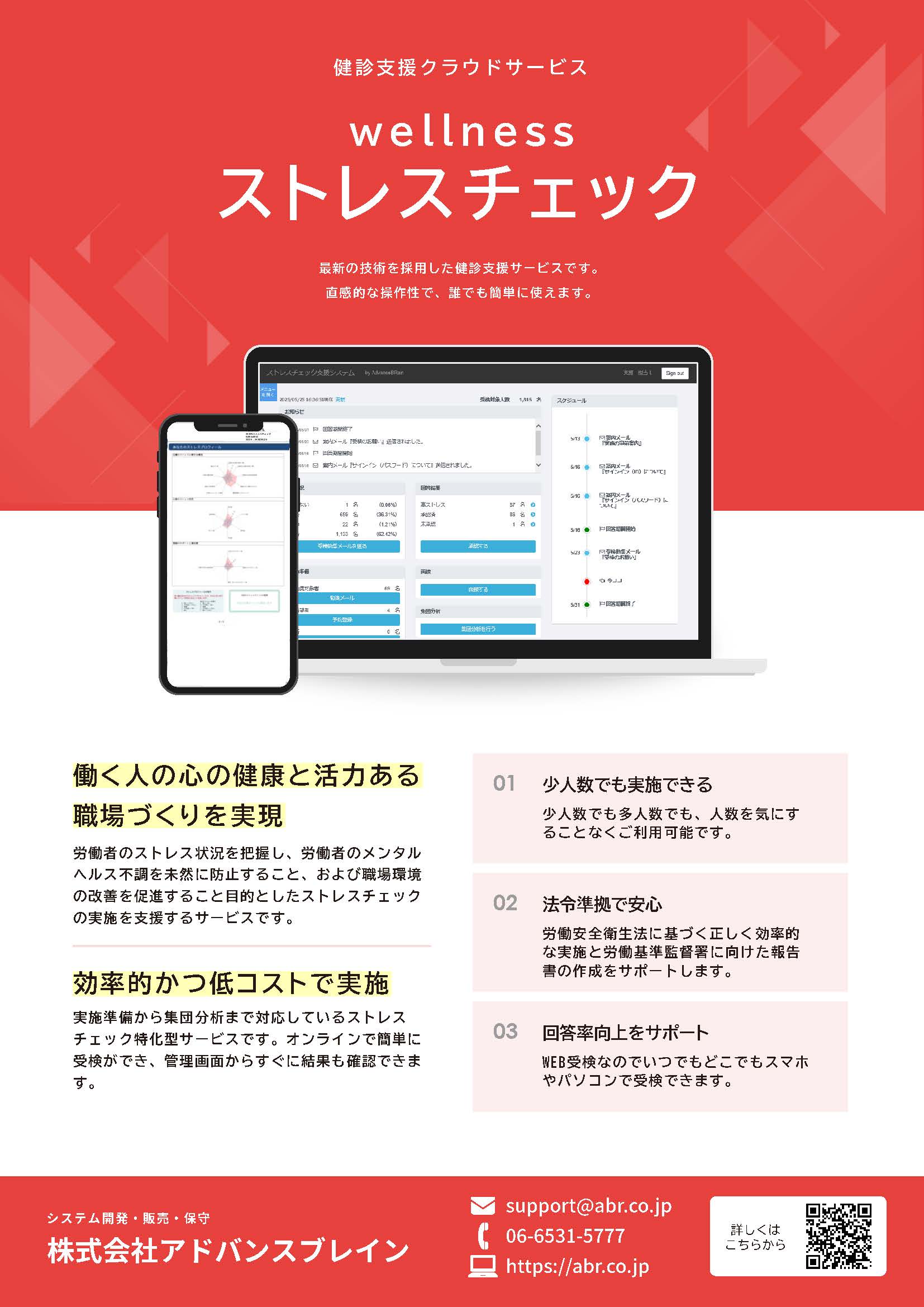 プロダクト・サービスの資料ダウンロード アドバンスブレインのプロダクト・サービスの機能紹介のパンフレットがPDFファイルでダウンロードいただけます。 ダウンロードしたい資料を選択 *けんこうノートPro予約・受付・面談問診・調査票ストレスチェック会社名/学校名 *部署 *担当者お名前 *メールアドレス *メールアドレス確認 *電話番号 *お問い合わせ内容0 / 500プライバシーポリシーに同意 *同意するご記入いただいた個人情報は、弊社のプライバシーポリシー基準に基づき、責任をもって管理いたします。入力された情報はすべて暗号化され、安全に送信されます。このサイトは reCAPTCHA によって保護されており、Googleの プライバシーポリシー と 利用規約 が適用されます。 入力内容ダウンロードしたい資料: {checkbox-2} 会社名/学校名: {text-1} 部署: {text-2} 担当者お名前: {name-1} メールアドレス: {email-1} 電話番号: {phone-1} お問い合わせ内容: {textarea-1} プライバシーポリシー: {checkbox-1}送信